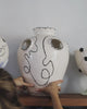 The Large Wish Vase plays with absence as much as presence. Circular openings interrupt the smooth white surface in a way that feels airy and architectural. Across the curved form, black linework loops freely, preserving the immediacy of Jones’ hand. Striking as a standalone sculpture, it can also cradle stems or branches — a vessel designed to hold both form and breath.